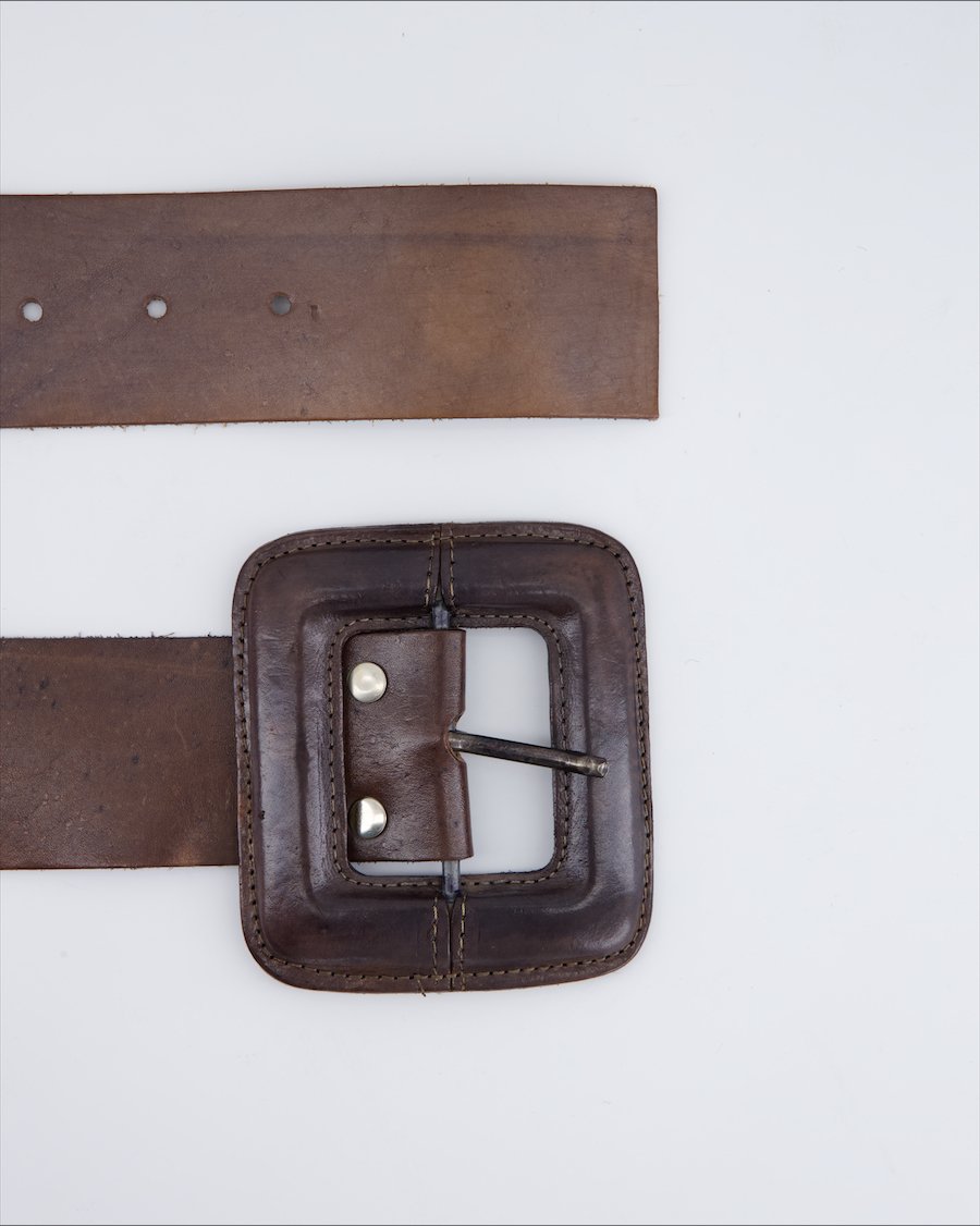 brown leather eith silver metal details