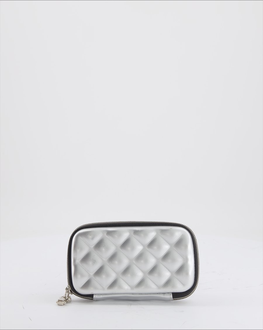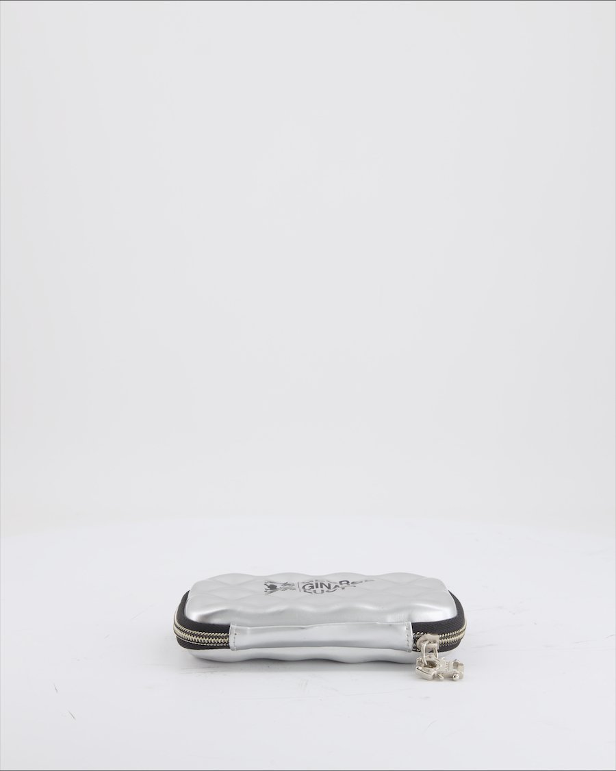 silver plastic with black monogram and silver metal details