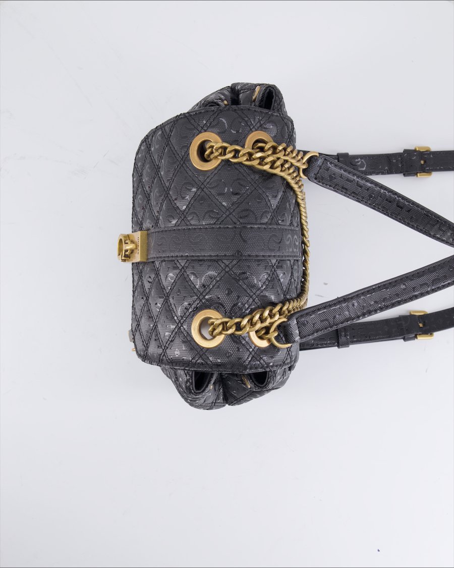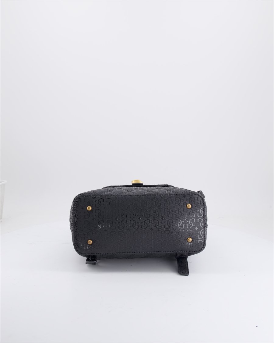 black leather with monogram and gold metal details