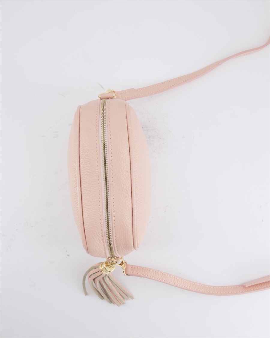 pink genuine leather with gold metal details