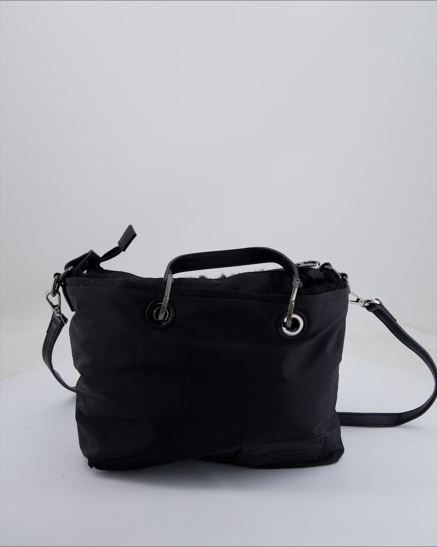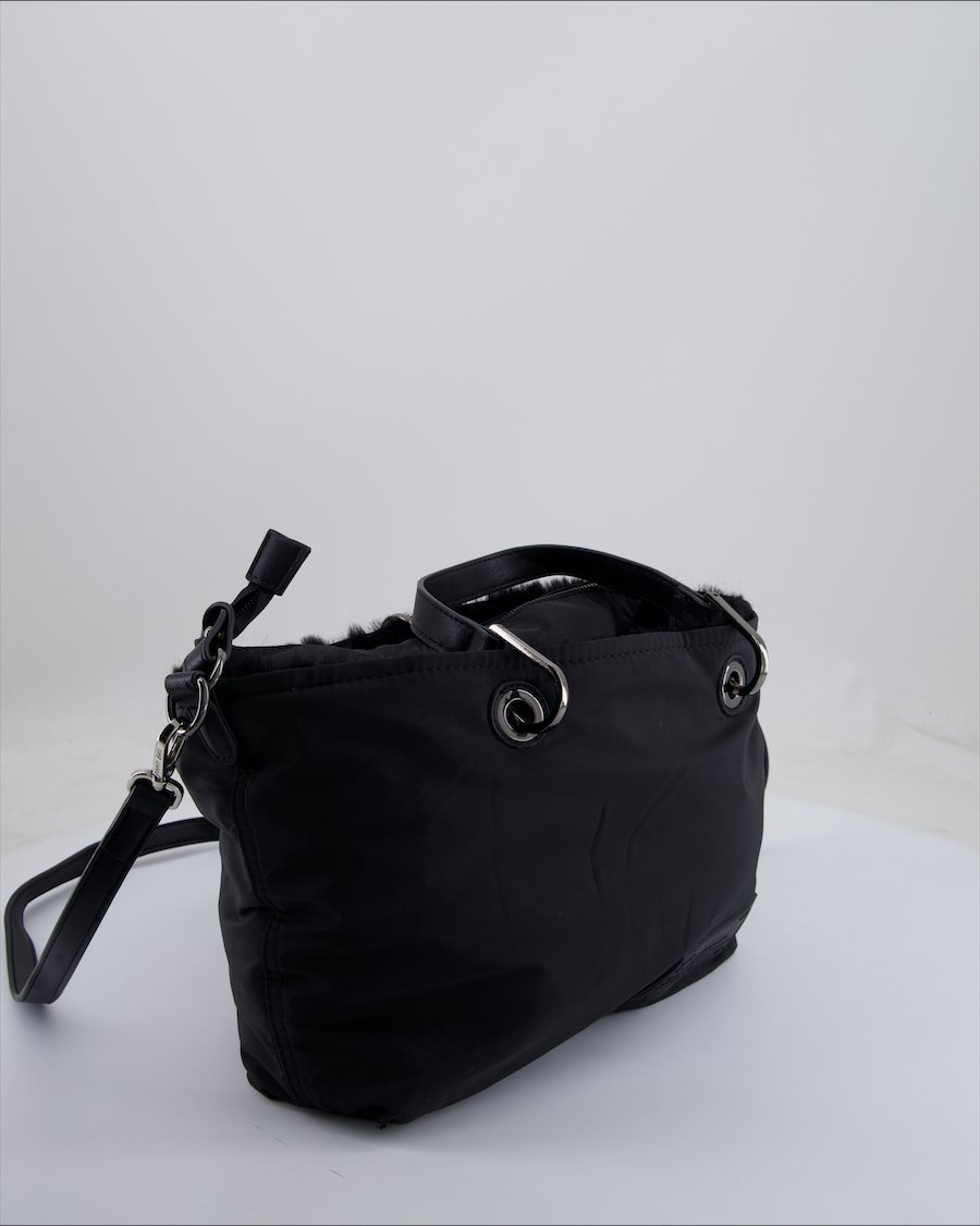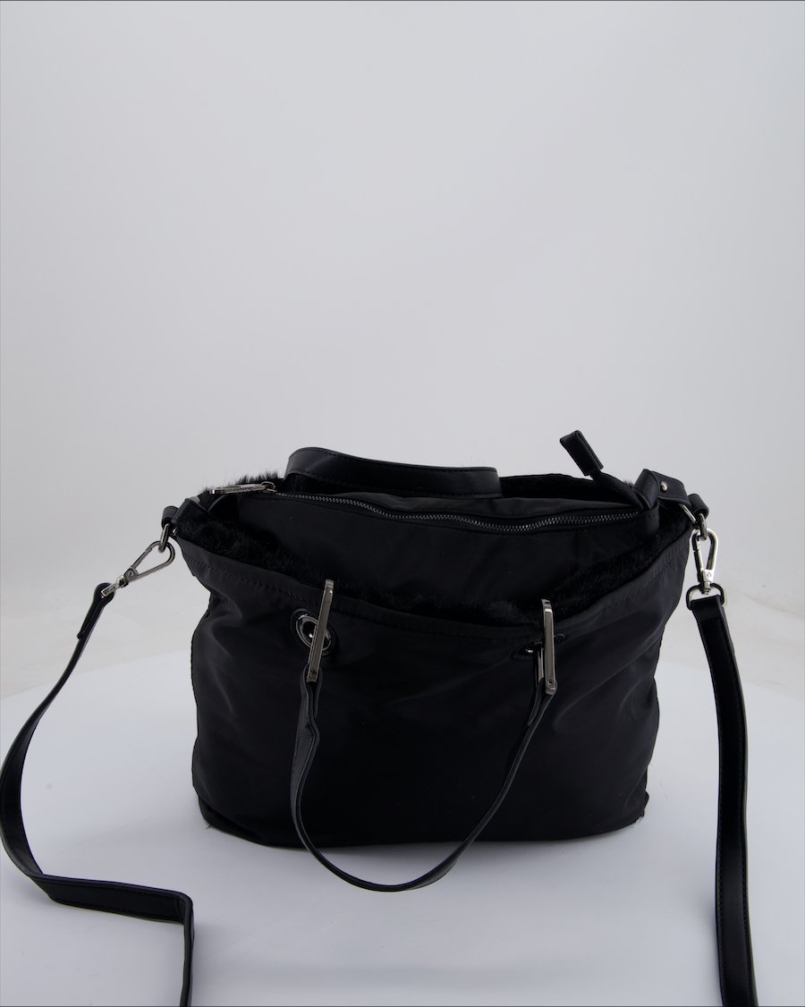 black cloth with faux fur inside
