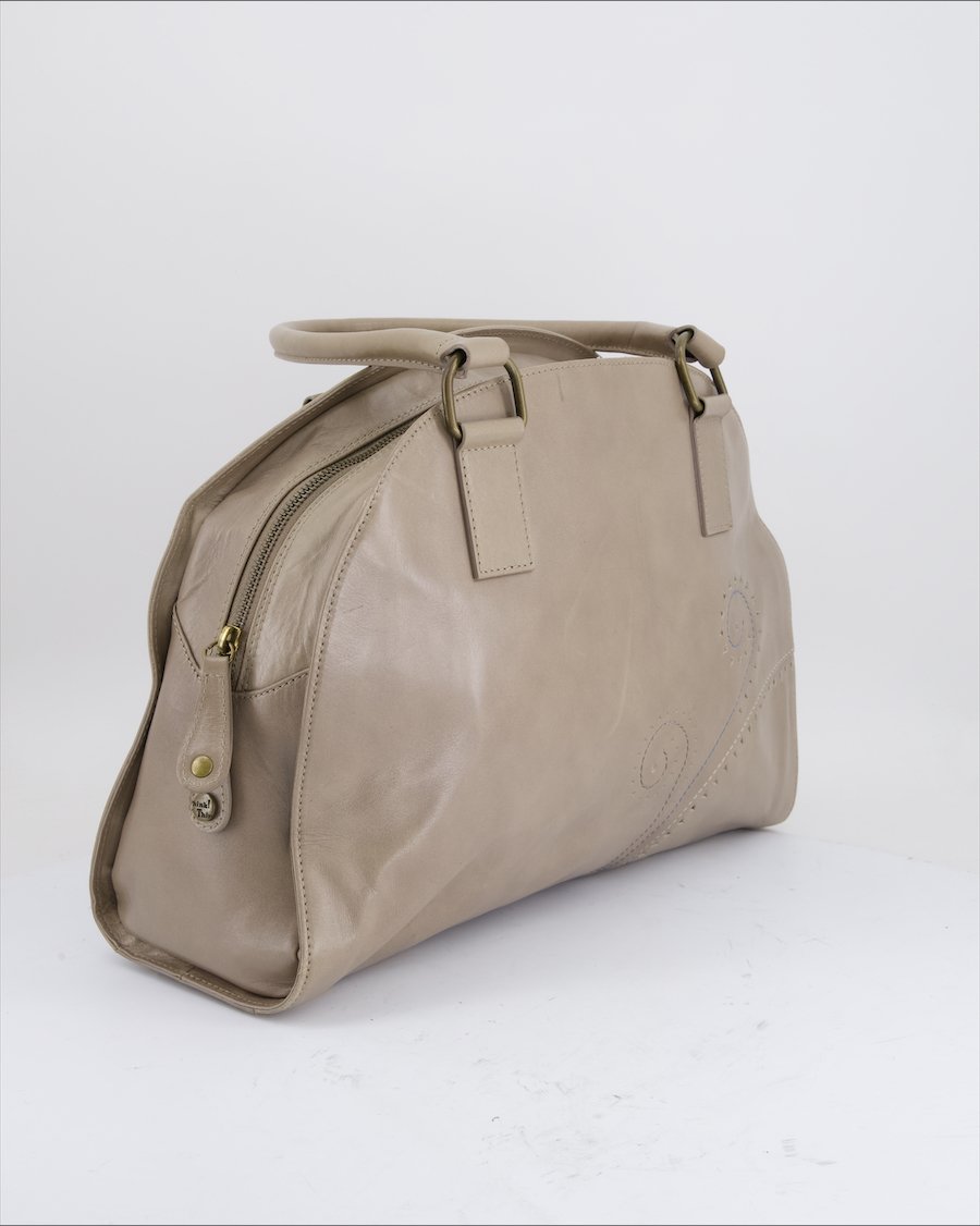 beige cloth with brown handles leather