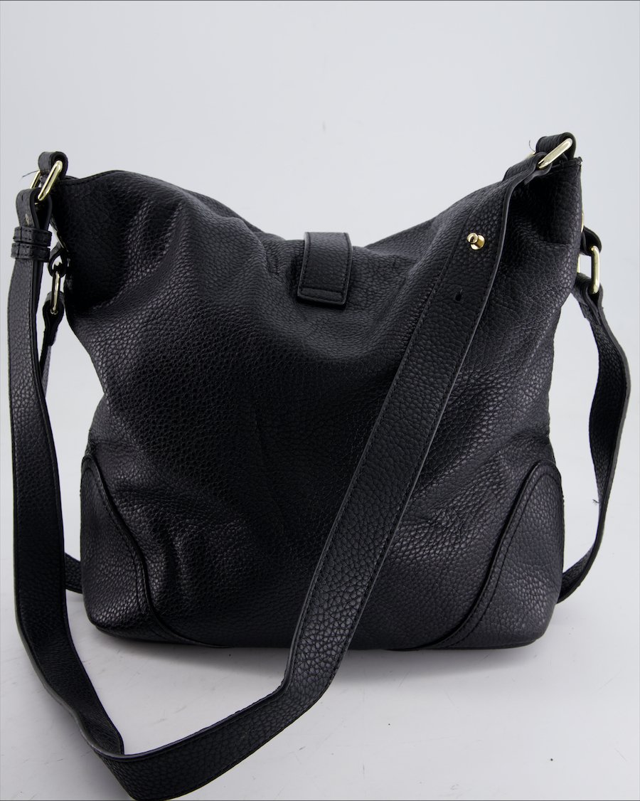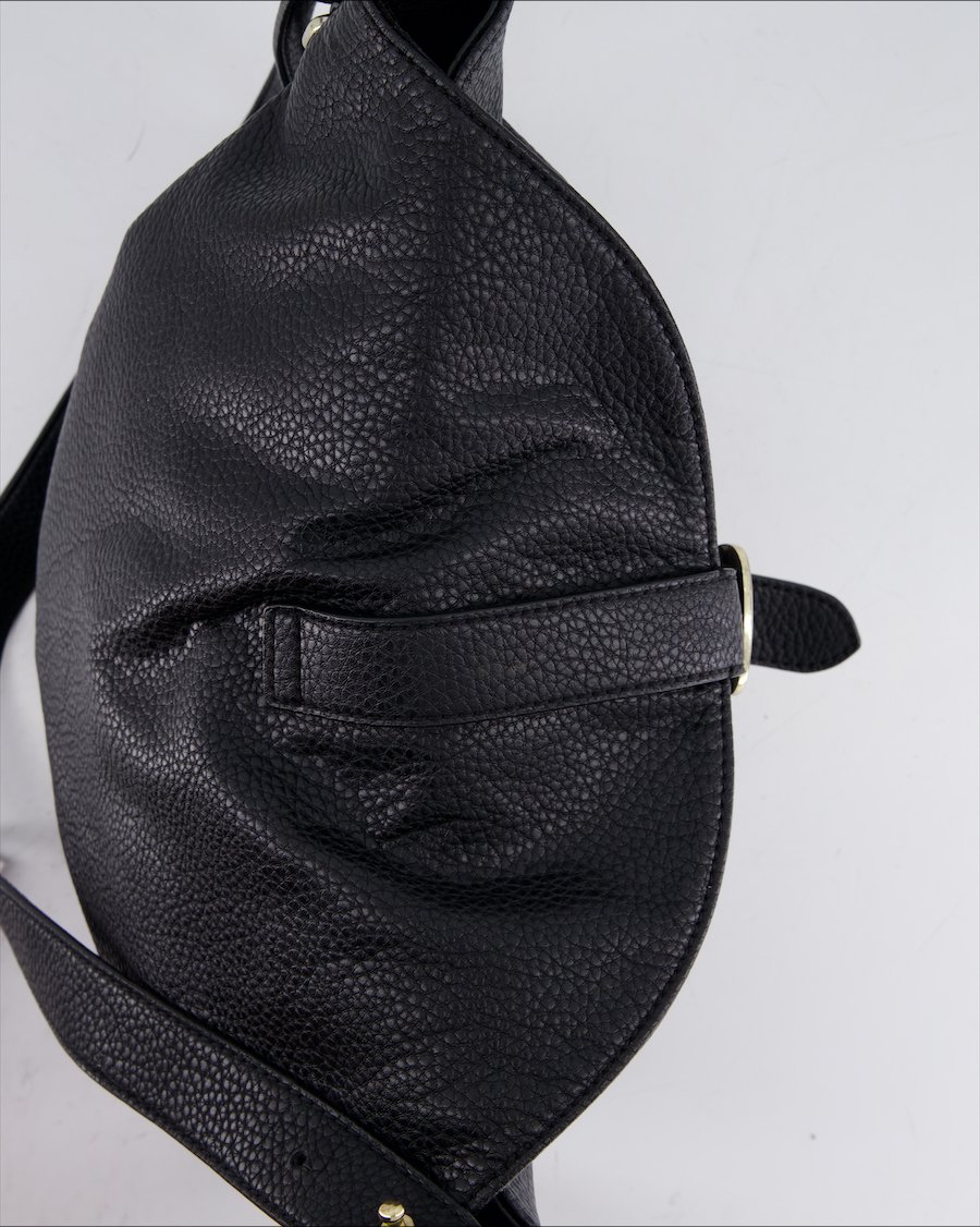 black leather with gold metal details