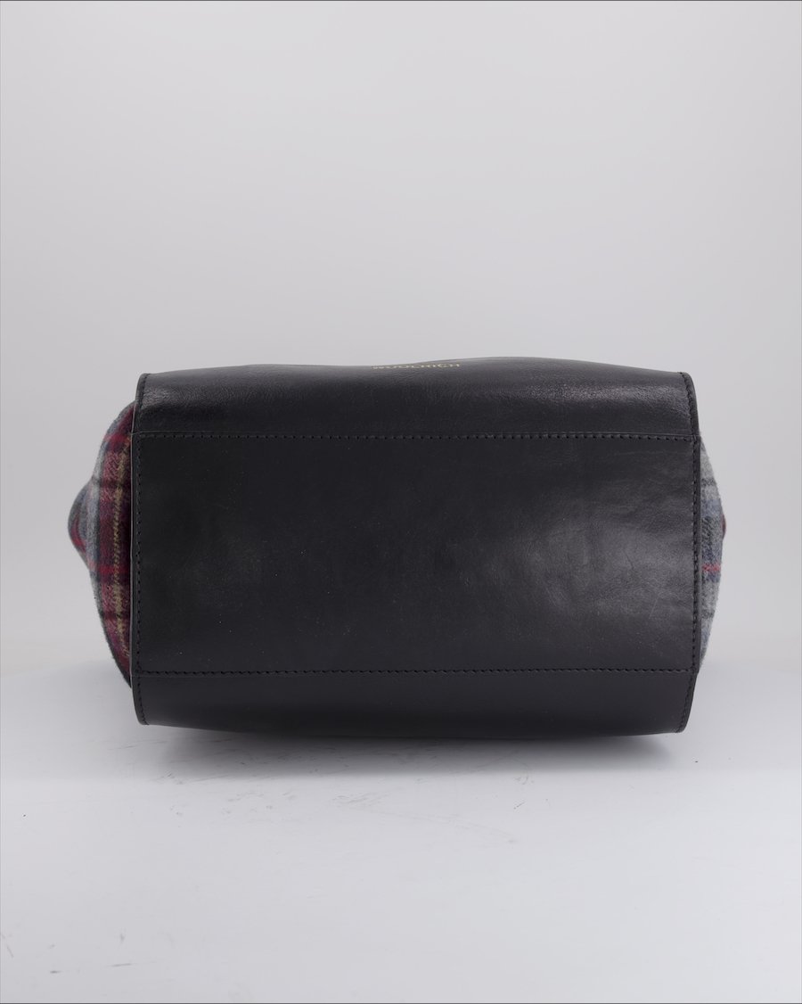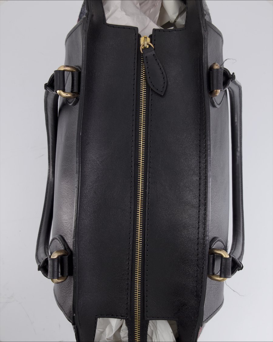 black leather and multicolor wool