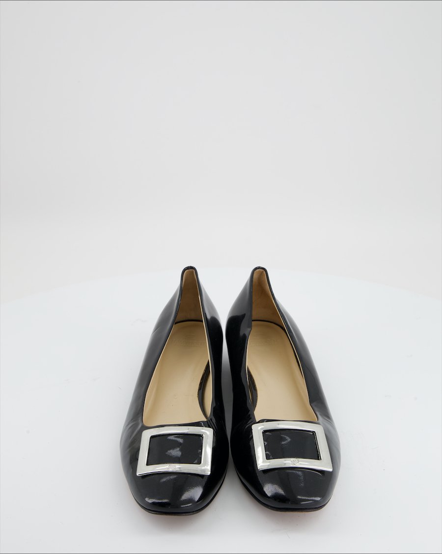 black leather and silver metal details