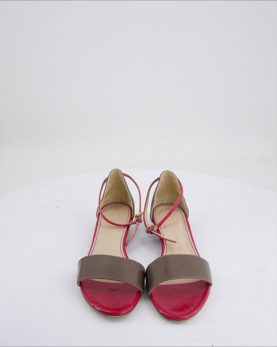 magenta and ecru leather