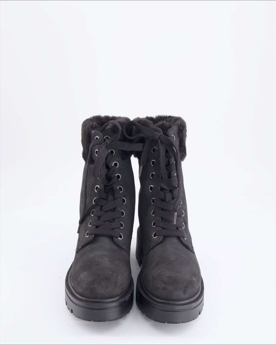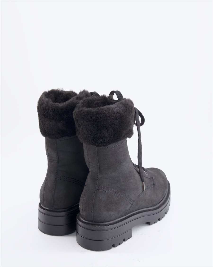 black leather with faux fur